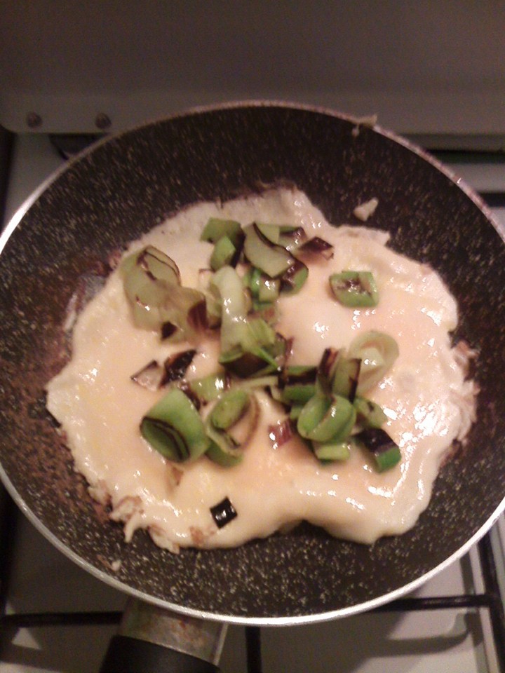 Siis muutus mu omlett koledaks ja laperguliseks. Aga no jätkasin ikka. Panin peale oma porru ja 2 viilu juustu, kuid siis läks kiireks ja juustust pilti ei jõudnud teha